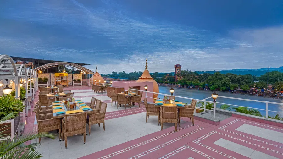 Elegantly designed rooms and suites feature seating areas with river views, inviting you to soak in the holy ambiance. Enjoy wholesome vegetarian cuisine at the multi-cuisine restaurant Annapurna or unwind at The Patio, the rooftop resto-cafe with panoramic city views. Enrich your stay with genealogy experiences, temple visits, or a nature escape to Rajaji National Park, and conclude your day with rejuvenating spa therapies designed to relax mind and body.