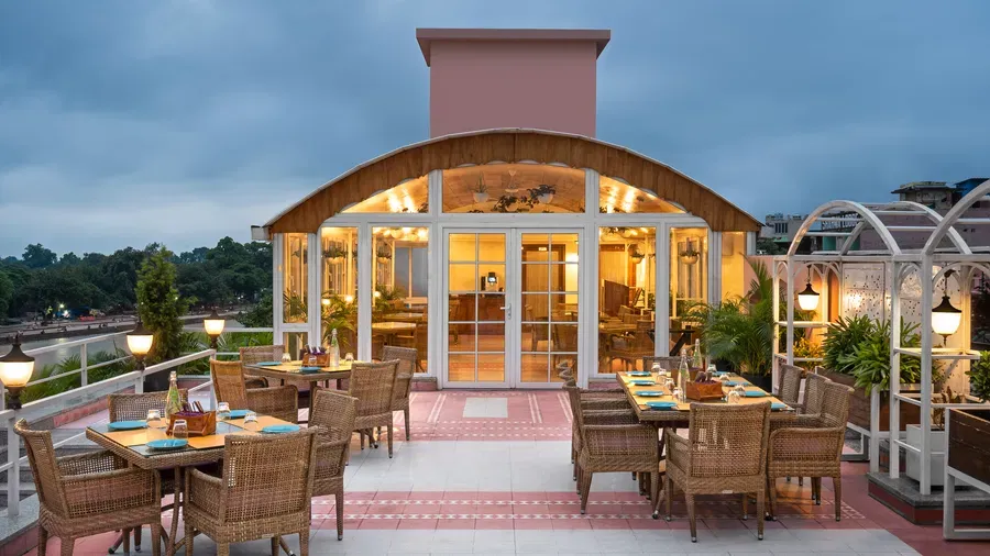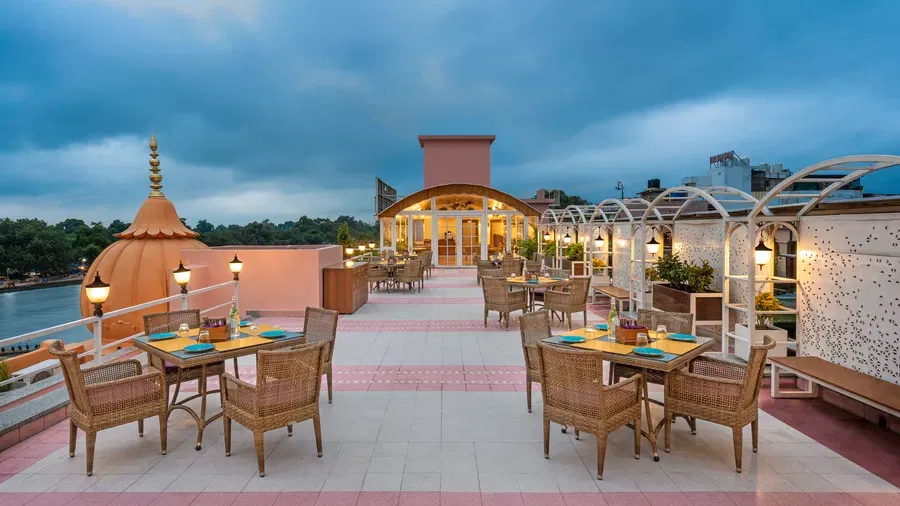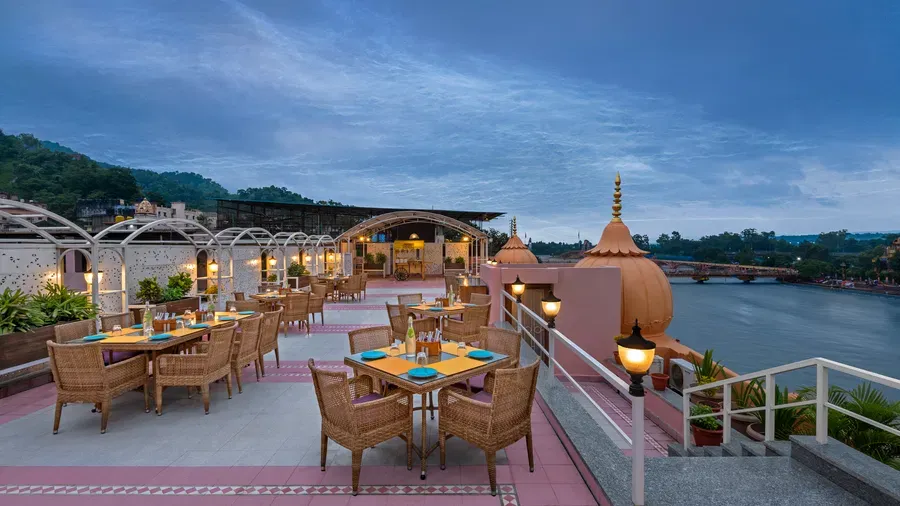 Elegantly designed rooms and suites feature seating areas with river views, inviting you to soak in the holy ambiance. Enjoy wholesome vegetarian cuisine at the multi-cuisine restaurant Annapurna or unwind at The Patio, the rooftop resto-cafe with panoramic city views. Enrich your stay with genealogy experiences, temple visits, or a nature escape to Rajaji National Park, and conclude your day with rejuvenating spa therapies designed to relax mind and body.